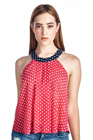 $27.90Sleeveless Polka Dot Top Red White Navy